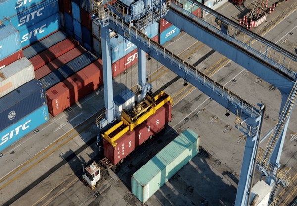 (3)优先选带自动定位、无人化作业功能的智能机型,接入码头调度系统; (4)额定起重量≥45t,堆码层数≥5 层,满足高密度堆存需求。